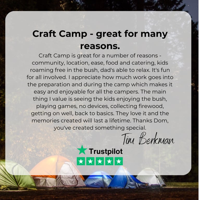 Craft camp was originally created to offer dads an exceptional opportunity to bond with each other, develop new relationships, and promote a break from digital devices for their children. The camp's first event in 2019 was attended by a significant group of 35 participants, and the most recent event had over 300 campers, which has become increasingly larger but also more enjoyable with each passing year.